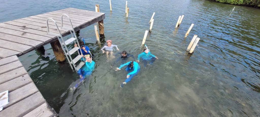 Day 4 was a full day spent at the Caribbean Coral Restoration facility on Isla Solarte! This is a place where the students can not only see a major difference being made to protect our delicate coral reef ecosystem, but they can be a part of it as well! We talk a lot about the imporantance of coral reefs, and the massive threats facing them on many different fronts. Students were able to spend a couple of hours snorkeling on an artificial reef put into place by CCR- witnessing for themselves the impact that creating these structures has on the ecosystem. It’s flourishing! Corals are now living where there was nothing but rubble before, and when the corals came back, the fish and other organisms came back as well! Among the highlights were seeing a nurse shark and an eagle ray!! After the snorkeling adventure, we had lunch then got to work! We went into the coral nursery area and talked about the condition of the reefs around the archipelago in terms of bleaching. It’s not good. CCR finds genetically strong corals that manage to survive when other individuals of the same species succumb to the high temperatures and hypoxic events. Fragments are brought into their nursery and grown, so these stronger corals can then be placed out on the artificial structures- giving the reef a better chance of surviving stressors!! Because we don’t consider it a good day in Panama unless we get wet AND messy, we then headed to the workshop area where students were able to work together to build artifical reef structures that will one day soon be placed in the ocean! Yes, OUR students will have their own structures that will grow corals and bring back the fish! This is a lasting impact on our local ecosystem- that will last even longer than the wonderful memories we made together today seeing first hand the difference that caring, passionate people can make! And that’s what Next Level Homeschool is all about- making a difference in the future through education today.