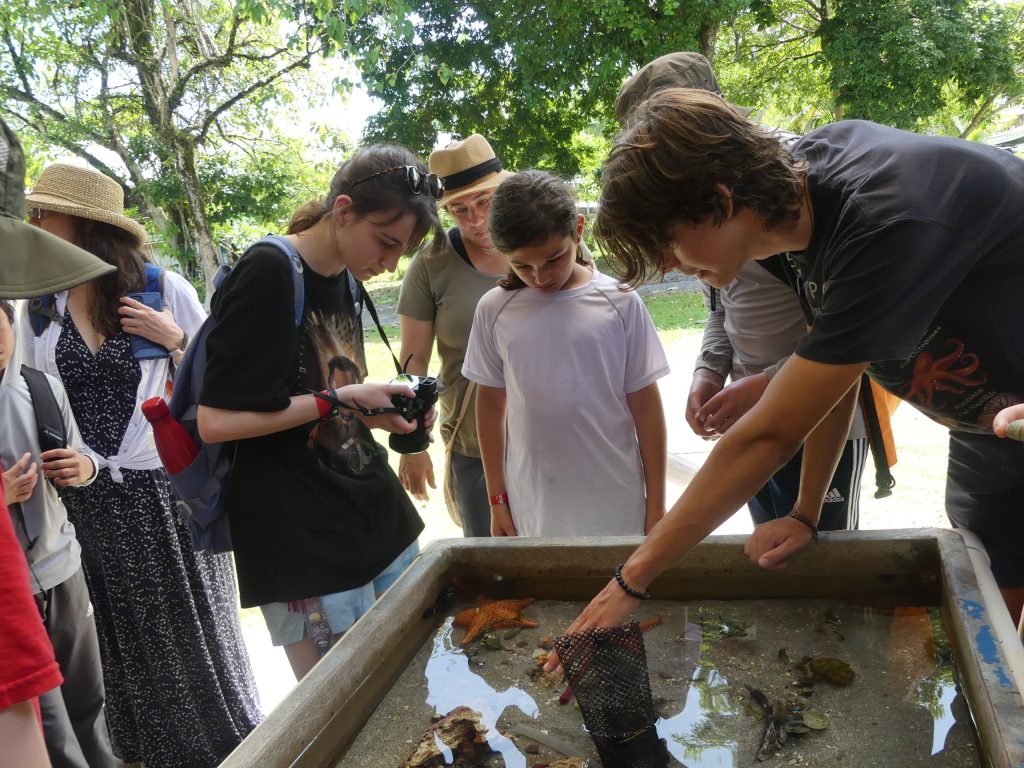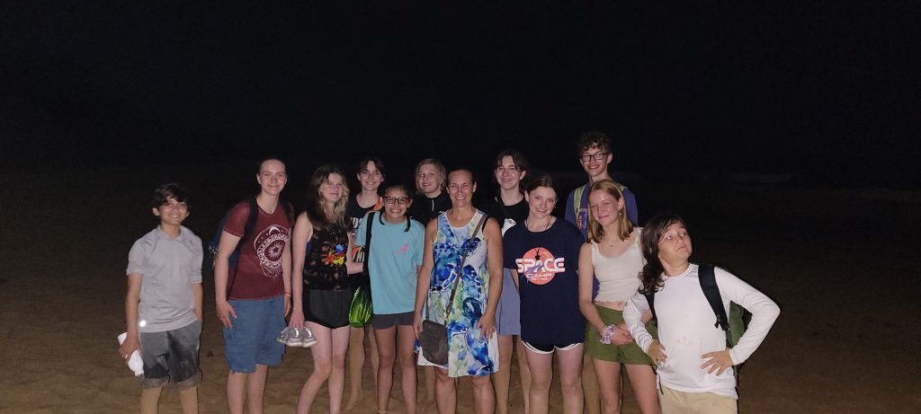 Day 3 started out with a trip to the Smithsonian Tropical Research facility on Isla Colon! We have a lot of students who are considering careers in marine science, so seeing a working research facility like this first hand, and even meeting and talking to scientists who are doing important research on coral bleaching and other issues was such an amazing opportunity! We had a tour of all of the classrooms, equipment, labs, and research aquariums! Not to mention the dorms for university students and researchers who spend extended time here on their classes/projects and the lunch room! Plus, we saw some fantastic wildlife- iguanas, caimans, birds, and more!! There is nothing more thrilling to me than to show students what real scientists are doing and sparking that passion that THEY can be doing this, too! Students had the afternoon off, but were instructed to take it easy because we had a long night ahead of us! (Spoiler alert: Kids (and parents) on a tropical island will NOT take it easy!!). We picked students up at the hotel at 7:30pm, and drove to Bluff Beach in the dark- hoping to witness the largest sea turtles in the world, leatherbacks, nesting!! The walk through the sand was not easy, but an almost full moon lit our way. I’m sad to report that even though the students took it upon themselves to do a ritual circle dance they created to summon the ancestral turtle spirits (yes, we are a secular school!!!), no leatherbacks were conjured during our trip. But a wonderful time was had by all anyway, because we were together with friends on a secluded Caribbean island beach experiencing the wonders of nature and science! Just another day in the life of marine zoology and oceanography students at Next Level Homeschool!!
