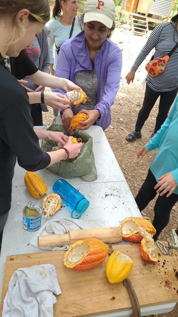 Every year our Marine Zoology and Oceanography students have the unique opportunity to visit the Next Level Homeschool Panama Field Station, Ojo Bio, in Panama! We spend 5 full days getting hands on with the marine science we have been learning all year, while immersing ourselves in Panamanian culture! And of course, meeting and making lasting friendships with other students who all share a passion for our oceans! We spent the first Day at Ojo Bio. Oceanography students worked on the interaction of our 3 coastal ecosystems- mangroves, sea grass, and coral reef. They took sediment samples from each area to see deposition from the creek at work, figured out where the different zones were, took salinity samples in each, and then snorkeled though the progression of each zone to see them in action! Marine Zoology students also marked the different zones, but we looked at them from an animal’s point of view! What abiotic factors (sun, tides, air, salinity, rain, etc…) must an animal in each zone be adapted to withstand? Students worked in teams to locate organisms in each zone and list all of the factors affecting them. Then we did a population study using quadrats to count the size and quantity of mangrove crab burrows! When a class wasn’t in science, they were up in our cacao forest learning all about how we harvest and prepare cacao! Why do we do that? To make CHOCOLATE! Students were able to harvest, roast, and grind their own beans to make the freshest chocolate they’ve ever had! Days are full of fun, adventure, and learning with Next Level Homeschool and Ojo Bio!