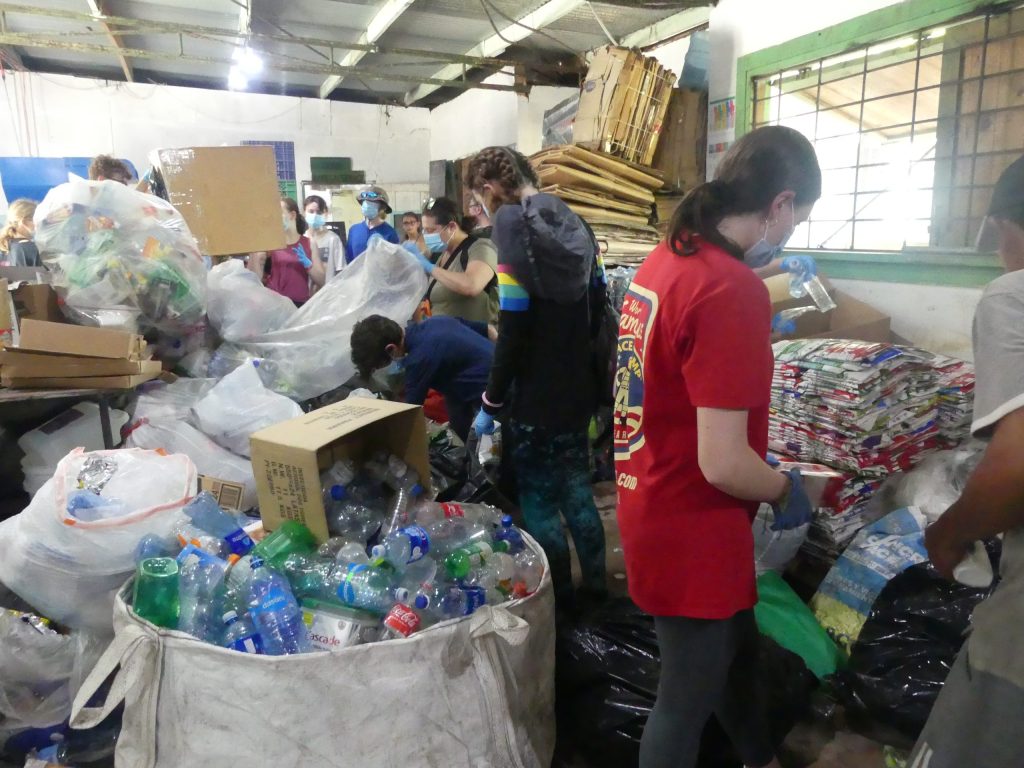 Say it isn’t so! Day 5 is the final day!! But we didn’t spend a second of it being sad that our experience was almost over. We all jumped in to yet another ecosystem restoration project. This time is was mangrove reforestation. Students had been hands on with the mangrove nursery we host at our Ojo Bio property on the mainland. But now it was time to see where those babies in the nursery go when they become “teenage” mangroves! After the mangrove propagules establish a firm root system in our mangrove nursery and can withstand wave action, they are taken out to an area off of Isla Colon for reforestation of a destroyed island there! We work with Fundacion Naturaleza on this project, and they came out and loaded up about 300 mangroves from the nursery into our boat. We picked up the students and got to work! Fundacion Naturaleza workers dug the holes for the mangroves, and students tore open the bottoms of the biodegradable bags, ran a support stake through the bag, placed it into the hole, secured the stake, tied the baby mangrove to the stake with string, filled in the hole, then did it all over again until all of the mangroves were in place! They were all so engaged and proud of the work they were doing! I told them that they need to come back in several years and see the difference that a few hours of their time today made to the ecosystem of this area! We then headed over to the Tangerine International School to have lunch with the students there, share a game of futbol (soccer), and then work together on a project. A very important project. We generated a lot of trash this week- 10 families, with 11 students and 15 family members. Isla Colon in Bocas is a very small, delicate area, and trash is a huge problem. So to wrap up our workshop, I put the kids to work at the Bocas Recycling Center so they could give back to the community that gave them so much this week! Lucky for them, Friday morning was collection day! So a huge room of bags full of mixed plastic, cardboard, and glass awaited them! They spent almost two hours sorting all of it, and the director was amazed at how hard and quickly they worked! These are GOOD kids!!! After sorting was over, they each had a turn at the glass grinding machine, where glass is recycled into small pieces with no sharp edges. We then took the glass pieces into another room where they were mixed with cement to make pavers! It was so cool for the kids to be able to see something going from a piece of trash to a usable product! What a wonderful way to send the students home- two days of really contributing to the planet through coral reef restoration, mangrove reforestation, and recycling! Proving to these amazing students that no matter your age, YOU CAN MAKE A DIFFERENCE! And that is what Next Level Homeschool is all about- not just online learning of information, but taking that information into the real world and making a difference!!
